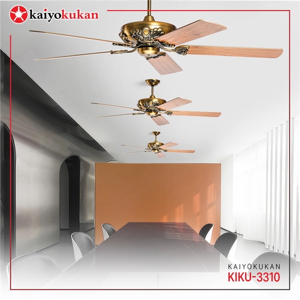 KaiyoKukan Kiku 3310 ceiling fan features a standard diameter of 1.52m. Each of the 5 blades is made from 3 layers of wood with moisture resistant paint coating, which helps prevent the blades from termites and warping.